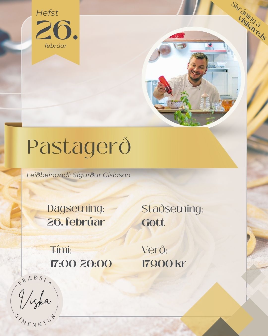 Dásamlegt ítalskt síðdegi með okkar ástkæra Sigga Gisla þar sem við lærum handverkið og tækninni á bak við pastagerð.